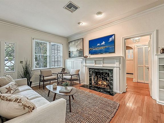 Right from the pages of Traditional Home, this Cape Cod charmer is set on a beautifully treed lot on one of the most architecturally diverse and popular streets in the Osprey to Orange corridor. Talk about walkability! Southside Village with myriad restaurants and shops in addition to Sarasota Memorial Hospital is only a block away. The vintage compound consists of the nearly 2,000 square-foot main house with its exterior a study in graceful design and symmetry. Also included is a separate guest cottage, shaded fenced back yard; and one-car garage with adjacent car port. Built in 1940 and updated in 2008 with the addition of a new master bedroom wing, the beautifully appointed home has two additional bedrooms and bath, separate living and dining areas, an updated kitchen with granite counters. Features include original strip Oak floors, built-in display shelving, an abundance of windows providing a light and bright interior and an atmospheric wood burning fireplace with a wood carved mantel. The centralized screened-in porch opens to the back-yard patio, guest cottage; and pavered motor court. The 840-square foot self-contained guest cottage offers two levels united by a spiral staircase, with the kitchen, living room and dining area on the first level and two bedrooms and bath on the second; just a few steps from the main house. A rare find in today's market.