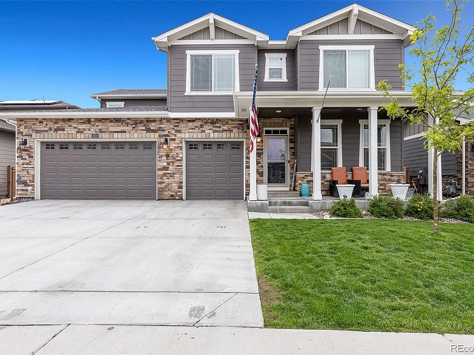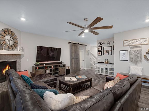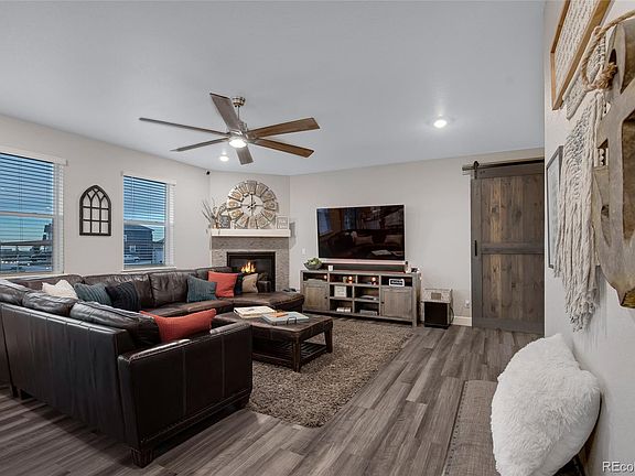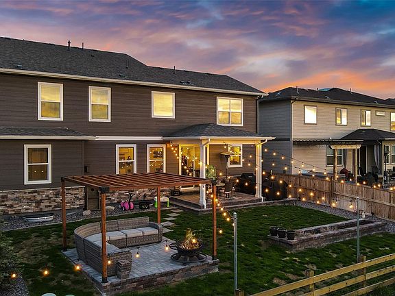 Back on the market! This is a Beautiful nearly new home with mountain views! The open floorplan is enhanced with a tranquil, spacious yard and covered back patio for entertaining. The great room features a stone fireplace, dining area, and space to entertain. The kitchen includes top-of-the-line Electrolux stainless steel appliances, white shaker-style cabinets, black quartz countertops, and a large corner pantry. The main level floor plan has a large main floor bedroom with a full bath and a large private study. The upper level features an oversized Primary Suite with a beautiful five-piece ensuite and a large walk-in closet. In addition, the upper level has a large loft area three additional roomy bedrooms with two full baths, and a dedicated laundry room. The recently finished lower level contains an additional bedroom, workout room, movie room, and bonus room. The home is complete with extensive luxury plank flooring, central air conditioning, custom LED lighting, and ceiling fans. The professionally designed and implemented front and back yard landscaping features full irrigation to the lawn and plants and plenty of room to entertain. For garage lovers, the fully finished garage has been drywalled and features two oversized 8-foot tall garage doors with openers for taller trucks, jeeps, campers, etc. Watch the Colorado sunset from your covered back patio, and enjoy the stunning views! Call today for an in-person or virtual showing. Includes a 1-year home warranty. The previous buyer was unable to obtain final loan approval.