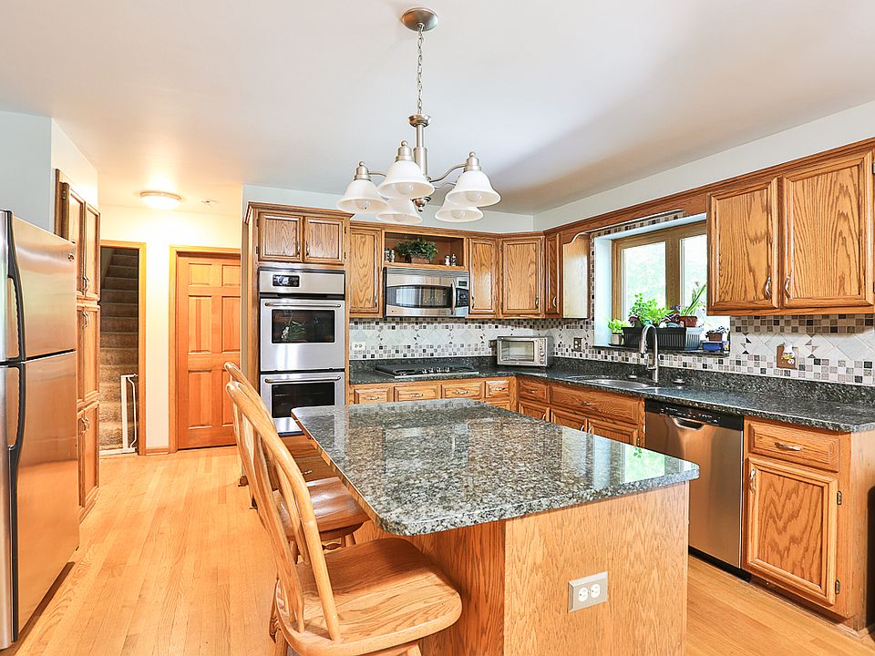 Beautiful brick front home in the highly desirable Winding Creek Estates! 5 BR 2.5 Bath 3, 951 finished square feet with generous sized rooms and dual staircases PLUS add'l 1, 642 sq ft basement that can be finished to your taste. Located on 0.4 acres, one of the largest lots in the subdivision. Updated kitchen w new gas cooktop, solid oak cabinets, granite countertops and island, and newer stainless steel appliances. Huge master bedroom with sitting room, walk-in closet and large master bath with skylights and whirlpool! Newly updated bathrooms, large deck and gorgeous sunroom with cathedral ceilings and skylights. Great location-walk to 203 schools, park pond playground and swim tennis (bond required). PACE bus to 5th Ave Metra and 10 minutes to downtown Naperville. Quick close possible. This one won't last!