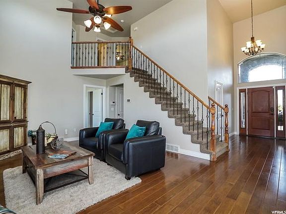 Elegance and a whole lot of fun! Open and inviting front porch leads into the grand entry of this beautiful executive home. Open 2 story vaulted Great Room with stone surround gas fireplace. Spacious Kitchen, Master Suite and Laundry Room with new energy star rated washer and dryer on the main floor. Mother-in-law apartment with master suite and full kitchen on the lower level. Entertain in the theatre room with power reclining leather seats, surround sound speakers, projector and equipment stay with the home. Granite countertops, Hardwood floors, Stainless Steel Appliance throughout. Entire acreage is fully fenced with 3 entrance gates and includes a huge stamped concrete patio with 2 year like new, nine person Hot Tub, Basketball Sports Court, fire pit with gas connection, 16 x 20 shed, deluxe chicken coop, small tool shed and covered Trex deck. Oversized garage features workbench and storage above. Quiet, desirable neighborhood with community playground and walking trails nearby. Square footage figures are provided as a courtesy estimate only and were obtained from an appraisal on 9/12/2017. Buyer is advised to obtain an independent measurement.