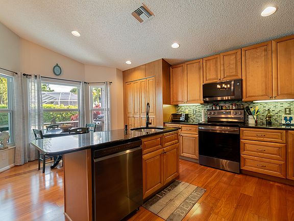 Fantastic 3/2 pool home on premium lot with beautiful Tiki makes this home unique creating a private backyard tropical oasis! Many upgrades including newer roof 2021, impact windows and sliders 2020, enlarged paver driveway 2021 and beautiful Tiki Hut with electric and Travertine tile 2022. One of the larger lots in the desirable neighborhood of Lakefield North, property has fully fenced backyard, screened patio, lush landscape with app controlled irrigation. Inside you have open concept, split bedrooms, plantation shutters, newer black stainless steel appliances in kitchen, separate laundry room with newer washer/dryer, Nest thermostat, laminate and tile flooring throughout. Community is very near to equestrian facilities as well as shopping and restaurants.