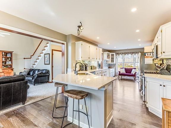 Enjoy beautiful rear views of the 15th hole of Chapel Hill Golf Course from unique brick patio's or the homes wall of rear windows. Also located on nicely landscaped cul-de-sac location and yard has shed (hot tub is negotiable). You'll love entertaining in this distinctive bright kitchen with newer quartz counter top and hickory wood flooring(both 2016), along with stainless steel appliances. Also includes great built-in pantry, planning desk, expansive cabinetry space, and generous eating area with open view of vaulted great room. First floor spacious laundry room and newer chic 1/2 bath. Features versatile dining room, parlor studio. Retreat to master suite with tray ceiling, private bath w/ jetted tub, shower, vanity, walk-in closet and rear balcony with great views. Large partially finished basement offers much potential with storage, exercise rooms and more. Furnace(2014) and includes newer Arzell Heating/cooling system to allow for high efficiency, zoned climate control on the second floor. Gas Budget only $49/mo. Roof-2012. Updates in 2016 include; New Carpet, Kraftmaid soft-close cabinets in laundry room, Lift Master Garage door opener, Stained/painted Cedar Shake siding, Hot water heater, balcony off 2nd floor, powder room and all freshly painted. Don't miss seeing this exciting home and it's Great Value!