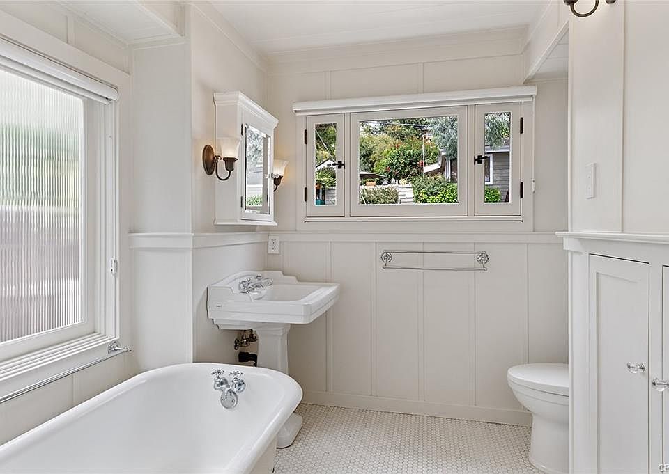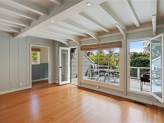 LUCKY YOU! This home is back on the market just in time for the New Year! Come preview this home and magical garden. It will not disappoint you! Enjoy the ocean view and sunsets from the upstairs deck and bedroom. This enchanting historic cottage lovingly restored and surrounded by gorgeous, blooming gardens with a huge grassy backyard was featured on the 2015 Garden Tour. 3 bedrooms, 2.5 bathrooms plus a family room. This incredibly charming and inviting home has the original hardwood flooring and it looks fabulous! It has open beamed ceilings, a cozy fireplace, French windows and doors, stained glass, Dutch front door, indoor laundry and lots of storage. Chef's kitchen with marble countertops includes a farmhouse table for sharing meals or dine alfresco off the deck or patios. Separate downstairs family room opens to the lush and serene backyard. Other unique features include a newer Nest thermostat to keep the cottage at your perfect temperature, vintage claw foot bath tubs plus an outdoor beach shower. Desirable location near Bluebird Park, close to beautiful cove beaches and downtown. You can't help but fall in love with this adorable home in the heart of Woods Cove. AVAILABLE JANUARY 15th 2023. BONUS! Water and Gardening Service Included in lease. DO NOT MISS THIS OPPORTUNITY TO LIVE IN THIS VERY SPECIAL HOME! AVAILABLE TO SHOW DEC 16th from 9:00am to 6:00PM. BONUS! Trash Service, Water Cost and Gardening Service Included in lease