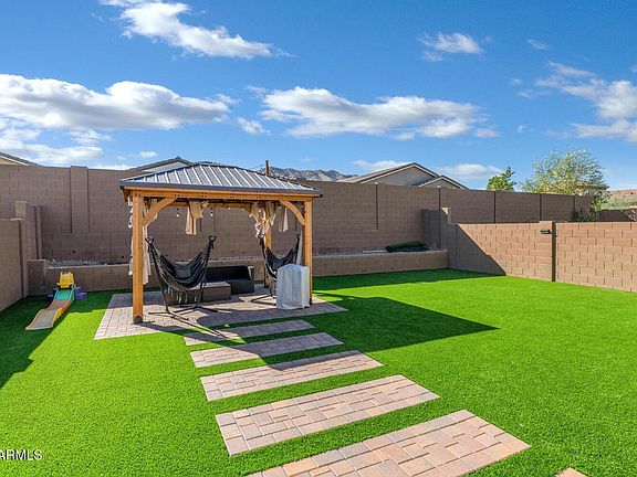Discover this move-in-ready gem in the gated community of Dobbins Heights. This elegant 4-bedroom, 3-bathroom home features an open-concept living area flowing into a modern kitchen with sleek appliances, ample cabinet space, and a large island perfect for gatherings. The spacious split floor plan offers a private Primary Bedroom with a walk-in shower and closet. Outside, enjoy mountain views from a low-maintenance backyard with turf, pavers, and a gazebo. Enjoy all the benefits of a Lennar home including Tankless Hot Water Heater! Nestled in a community with parks and easy access to the mountain preserve, plus nearby schools and shopping, this home combines style, comfort, and convenience.