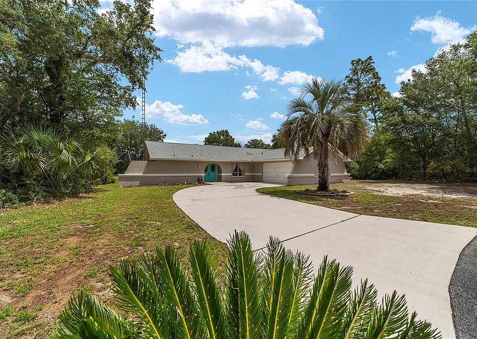 New roof in 2022 and new air conditioning in 2021. Welcoming golf course lot with unbelievable views. An impressive double-door entry welcomes you home to your piece of paradise, situated on a spacious .64-acre lot and surrounded by nature's beauty! This beautifully remodeled three-bedroom, two-bath home provides a bright, spacious and open floor plan with high ceilings, large dining room and a lovely sunken living room. Sliding glass doors flank the fireplace from the living room while opening up the home to even more light and air. Enjoy the Florida weather splashing in your pool, perfect for relaxation or entertaining. Enjoy the all-season Florida room for even more entertaining space. The designer kitchen will inspire your inner chef with its quartz countertops, soft-close drawers, stainless steel appliances and skylight over the center island. This home is everything you've been looking for and more!