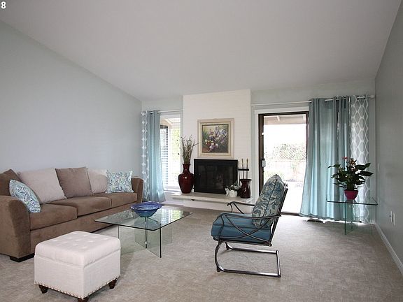 Rare opportunity, 1 level townhouse on a corner lot in the Garden Villas community. Gated courtyard with fragrant shrubs welcomes you into this home with no steps. Home is light and bright with vaulted ceilings and 2 sky lights. Enjoy a kitchen w/new gas appliances orBBQ in the beautifully manicured fenced back yard/patio. Finished garage is complete with full length cabinets and hanging rack. Grocery, restaurants, shopping close by.