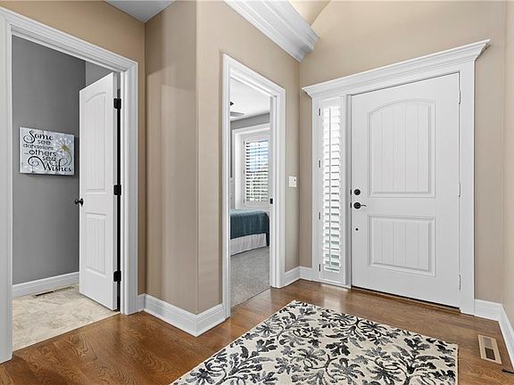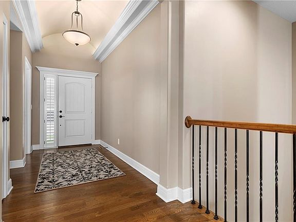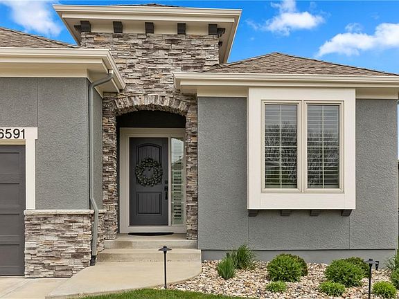 Step into elegance through the barreled ceiling entryway, which sets the tone for this meticulously crafted residence. This home boasts stunning hardwood floors that flow seamlessly throughout, complementing the open and airy floor plan. The heart of the home, the kitchen, is equipped for the gourmet chef with its large walk-in pantry and double ovens, perfect for entertaining or everyday meals. The granite countertops and state-of-the-art appliances add to its charm and functionality. Experience tranquility in the beautiful master suite, designed with relaxation in mind. It features a stand-alone tub and walk-in shower, ideal for unwinding after a long day. The suite is complete with two large walk-in closets, providing ample storage space. This home is a perfect blend of luxury and comfort, waiting for you to make it yours. Don’t miss the chance to own this exquisite property in Olathe!