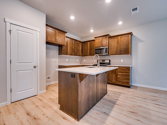 - Double Vanity, Fiberglass Stall Shower, Kitchen Island, Open Floorplan, Pantry, Shower/Tub Combo, Solid Surface Counters, Walk-In Closet(s)