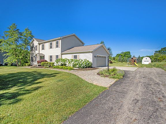 CALL BRIAN FAZEKAS 269.209.2286 - FANTASTIC COUNTRY LOCATION- Just north of town, you will find comfort in this serene and spacious 4-5 bedroom, 3.5-bathroom home, situated on a sprawling 1.33-acre lot in a tranquil neighborhood. Flaunting a well designed layout, all four bedrooms are conveniently located upstairs alongside a same-floor laundry room, ensuring both privacy and convenience. Look forward to preparing culinary delights in the kitchen, where stretching quartz countertops and a subway tile backsplash blend style and practicality. Adjacent to the kitchen, a welcoming dining area provides the perfect setting for intimate meals or game nights gathered around the table. Throughout the main living areas, notice the beautiful ceramic tile and solid maple flooring that create an atmosphere of elegance and durability. The home features a large finished walk-out basement, complete with a versatile space ideal for an exercise room or office, complimented by a full bathroom for added functionality. Step outdoors onto the deck with a canopy, offering a picturesque retreat for outdoor dining and relaxation! A bonus garage with concrete floors and electricity provides ample room for storage or a workshop, catering to various hobbies and storage needs. The peaceful setting, quality home, and spacious interior make this an ideal choice for those seeking comfort with sophistication.