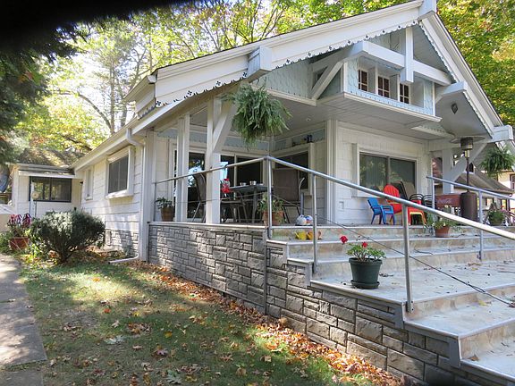 Cozy three bedroom chalet under the oaks with fireplace and a wide, sheltered veranda with outdoor fire ring overlooking the lake. Finished basement with TV, washer, dryer and storage room. All mowing, leaf raking, lawn care and trach service included. A year around vacation paradise or second lake home.