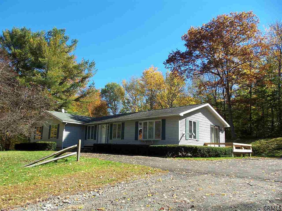 7.5 beautiful acres of woods & privacy, nestled back off the road, no one knows you are there! This ranch home has much to offer. A separate 3 car garage w/lots of storage upstairs. Enjoy your private setting on the wrap around deck. Upstairs a large living rm w/vaulted ceiling & pellet stove, french doors opens to kitchen or dining rm, 2 BD with plenty of closet space, Master BD w/full bath, walk-in closet & exit to deck. Full 1-2 BD apartment in basement as well as family rm w/pellet stove, 2 exits. Excellent Condition