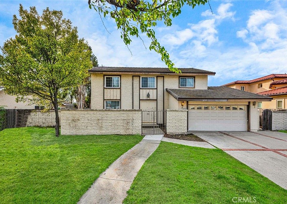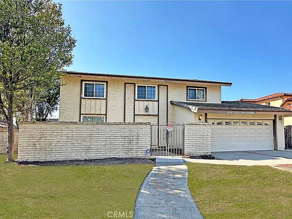 This is the best "fixer-opportunity" you've ever seen. Located on an extra large 7,600 square foot interior lot in one of Fountain Valley's premier neighborhoods close to Mile Square Park and close to all award-winning schools is this superb Fairmont 4 bedroom, 2.5 bath, pool home. A walkway leads to a private gated front courtyard and double entry doors. Step inside to a grand formal foyer, large formal living room and adjacent formal dining room. It boasts a beautifully remodeled Chef's kitchen that includes Jade granite countertops and backsplash, coffered ceiling with recessed lighting, stainless electric range, built-in stainless microwave, dishwasher, deep stainless sinks, and custom cabinetry with pull-outs, lighted glass display panels, and under cabinet lighting, and a peninsula with breakfast bar seating that is open to a GIANT family room with vaulted open beam ceiling, fireplace, and spacious casual dining area. There is tile flooring throughout the kitchen and family room, plus dual pane sliders that open to the extra large wrap-around yard with pool and spa (currently empty). There are so many wonderful possibilities for what this amazing backyard can be transformed into! A future entertainer's dream paradise AND with no overhead wires! there is also RV potential. An inside laundry room and a half bathroom complete the lower level. There are dual pane windows throughout this home. Upstairs there is quite an impressive primary suite with an arched passage that opens to true retreat and dressing area with coffered ceiling, recessed lighting, mirrored closets, plus a walk-in closet, and a slider to the large romantic balcony/patio that overlooks the backyard. The primary bathroom has a sit-down vanity and walk-in shower. There are 3 additional bedrooms upstairs and a guest bathroom with tile countertop and a tiled tub/shower combo with glass enclosure. Conveniently situated in the center of Fountain Valley with only a short drive to the beach, restaurants, shopping, entertainment, and easy freeway access, this is the ideal home to do a bit of fixing up and turning it into a dream come true!!