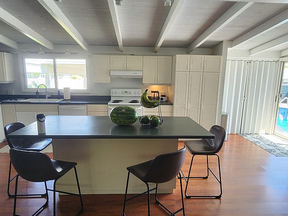 Welcome to your fully furnished 3 bedroom plus a den with couch pullout bed for occasional guest the beach home at 165A Ulupa Street in beautiful Kailua, Hawaii. This charming residence offers the perfect blend of comfort and convenience, making it an ideal retreat for anyone seeking the island lifestyle. Interior Features: The fully equipped kitchen includes all necessary accessories and modern appliances. Reliable high-speed internet is available throughout the home. Each room features adjustable-speed ceiling fans to capture ocean breezes. The game and TV room has air conditioning for added comfort. Exterior Features: Enjoy the recently remodeled aqua pool with custom glass tiles and mood lighting for evening swims or cocktails. Poolside furniture is provided for lounging and sunbathing. The surrounding wall is painted midnight blue to reduce glare and radiant heat. Outdoor cooking is easy with both a gas grill and a Weber charcoal grill. Covered parking is available with two two-car garages that include storage space for beach gear and bicycles. Prime Location: Just a five-minute walk to Kailua Beach, known for its soft white sand and turquoise waters. A short drive away is Lanikai Beach, perfect for peaceful days by the sea. The Lanikai Pillbox Trail offers scenic hiking nearby. Kailua Town is within walking distance and features local shopping, dining, and entertainment. Community and Neighborhood: The home is located in a quiet residential area, perfect for restful nights. It sits off the main street on a private lane, providing both privacy and easy access to local amenities. Experience island living in this comfortable and well-appointed Kailua beach home. Landlord covers, high-speed internet, pool service, yard maintenance, and pest control. Credit of $200.00 on Water, Sewer, and Electricity tenant pays balance on utility charges The initial lease term is 6 months, followed by a month-to-month agreement. Courtesy hours begin at 10:30 PM weekdays to ensure a peaceful environment for neighbors. A tax of 4.5% state GE Tax is added to the base rent.