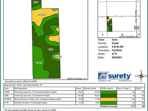 49.60-acres, high-quality, Cedar County farmland with productive Tama soils, located close to competitive grain markets.