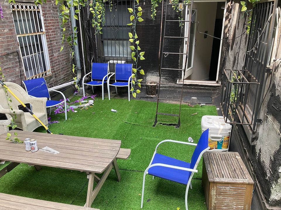 Private outdoor space! Huge apartment in a great East Village location! Brick wall, two decorative fireplaces. The largest of the bedrooms can fit king size bed with plenty of space for more furniture. The other bedrooms can fit queen size beds. All bedrooms have windows. Living room is enormous (no window) and there is a large eat-in-kitchen. Approximate dimensions: LR:15'8" x 16', BR1 14'7" x10'7", BR2: 14'9" x 6'7", BR3: 14'(9.6) x 7'7", BR4:13' x 6'8" Pets are ok!