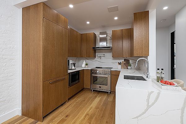 Welcome to 166 First Ave! Be the first to live in this BRAND-NEW, condo finished building unlike anything in the neighborhood! Upon entering the Flex 4 Bedroom, 2 Bath, full floor residence you are met with an open living room and kitchen, complimented by tall ceilings lined with LED dimmable recessed lighting. The custom Chef's Kitchen features a high-end Bertazzoni appliance package, complete with an induction range with a hood, dishwasher, in-drawer microwave, pot filler and wine-fridge! The calacatta countertops and backsplash highlight the high-end soft close custom oak cabinetry; complimentary of a living space perfect for home entertaining! The bathrooms feature radiant heated flooring, imported Italian tile, linear shower drains, rain shower and wand with individual thermostatic controls, full glass enclosures, custom vanities, and oversized recessed medicine cabinets with integrated lighting. The apartment features NEST controlled central heat and air conditioning, in-unit washer and dryer, extra wide white oak plank floors throughout, solid core wood doors, LED dimmable lighting with smart technology capabilities, USB electrical outlets, an HD video intercom, generous closet space and LATCH keyless access.