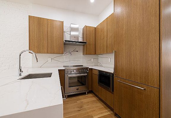 Welcome to 166 First Ave! Be the first to live in this BRAND-NEW, condo finished building unlike anything in the neighborhood! Upon entering this exquisite 3 Bedroom, 2 Bath, full floor residence you are met with an expansive living room and kitchen, complimented by tall ceilings lined with LED dimmable recessed lighting. The custom Chef's Kitchen features a high-end Bertazzoni appliance package, complete with a induction range with a hood, dishwasher, in-drawer microwave, pot filler and wine-fridge! The calacatta countertops and backsplash highlight the high-end soft close custom oak cabinetry; complimentary of a living space perfect for home entertaining! The bathrooms feature radiant heated flooring, imported Italian tile, linear shower drains, rain shower and wand with individual thermostatic controls, full glass enclosures, custom vanities, and oversized recessed medicine cabinets with integrated lighting. The apartment features NEST controlled central heat and air conditioning, in-unit washer and dryer, extra wide white oak plank floors throughout, solid core wood doors, LED dimmable lighting with smart technology capabilities, USB electrical outlets, an HD video intercom, generous closet space and LATCH keyless access.