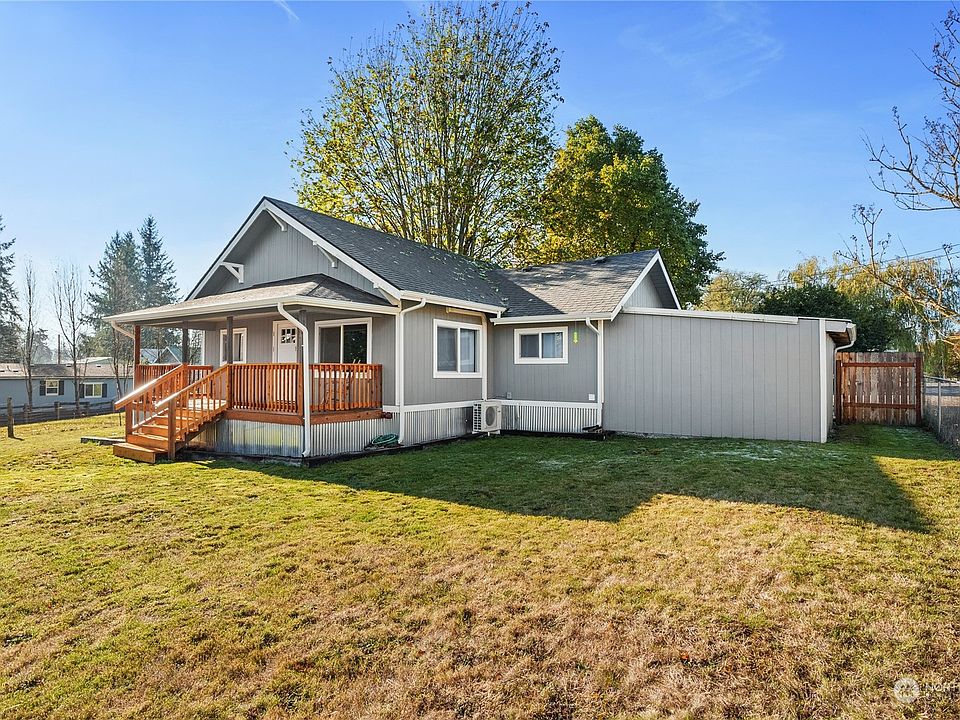 This 2 bedroom, 1 bath cozy abode is perfect if you're looking to downsize or the ultimate starter home. The open concept living area and kitchen are ideal for entertaining. With a ductless heat pump and newer roof, you will stay warm and dry this winter. Home features tasteful updates throughout completed in 2019 including cabinets, countertops, beautiful barn door on the laundry room, laminate flooring, and stainless appliances. This property includes a spacious deck in the back and fully fenced yard. Located in a quaint and peaceful community with easy access to I-5. Come take a look!