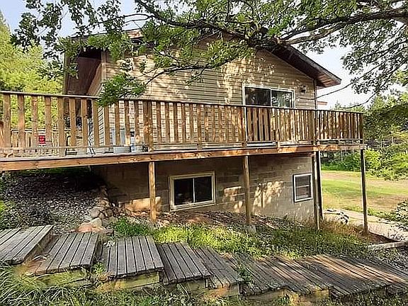 4 bedroom plus office 2 bathrooms. Located 1 mile from town next to Paul Bunyan trail 7.2 acres. Two story log accents through out the home with v-groove paneling, in floor heated pole barn shop, 35 year old Norway pine grove, wood heating, and new deck.