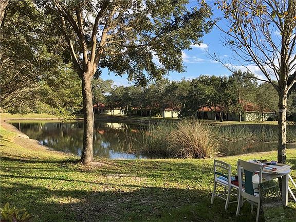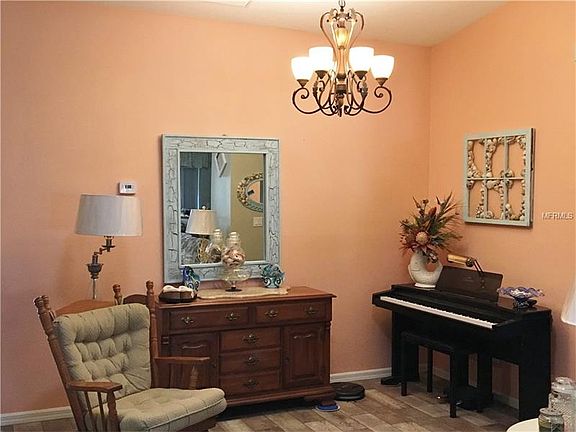 This is a very lovely and well cared for paired villa. The walls are painted in soft pastel hues and the home has decorator touches such as a plant/display shelf and beautiful chandeliers. The living area is an open concept design with a vaulted ceiling that provides a feeling of spaciousness. The 2 car garage has a/c and can be used for hobby or workshop. Exterior of home has new paint. This villa has a wooded view in front and a peaceful pond view from the enclosed patio at the back. Several different types of birds can be seen as you relax on the back patio. The small yard is low maintenance and has mature trees that provide shade. Palms of Manasota is a quiet over 55 community conveniently nestled in an area between Hwy 41 and US 19. This villa and the adjoining villa are in a separate association and have very low fees.