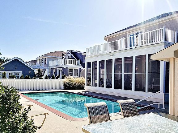 Close to Beach and Close to Town - Ideal Location! This 5 bedroom, 5.5 bath custom designed home on an oversized, 75x110' lot affords space and amenities not found on standard sized lots. This five bedroom home, each with private bath plus powder room allows for children, grand children and friends to enjoy Stone Harbor with you with space and privacy for everyone. There are three bedrooms and three bathrooms conveniently located on the first floor along with a very large family room with gas fireplace and wet bar leading to the screened in porch overlooking the pool, plus a front covered porch. The first floor also houses a laundry room and multiple closets for additional storage. The second floor consists of a bedroom with attached full bath, master bedroom suite with gas fireplace and a large rear private deck. The front of the home has a spacious great room with gas fireplace, kitchen, dining room, plus large sun deck with ocean views. In addition, this spectacular single family home has one of the largest residential pools in Stone Harbor and a detached two car garage, which are rare features in newer single family homes on 7 Mile Beach. This is an outstanding property that will meet any buyers needs. There are five outside living areas - two sun decks, covered porch, screened porch and pool area patio.