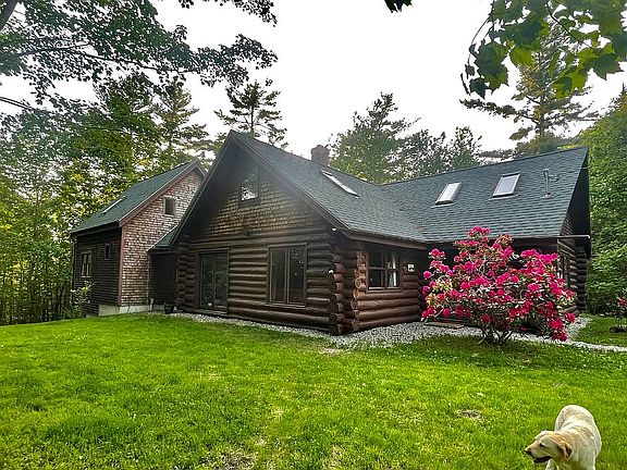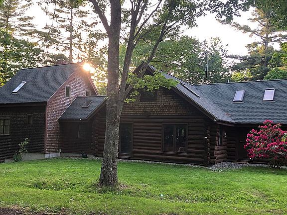 Custom built Log home with recent traditional 3 story house addition. Gorgeous and magnificent detail throughout! Beautifully landscaped and very secluded 2 acres with entrance though private road. A large and medium size wood stove easily and efficiently heat this house ! This home is 13 miles from the ocean and 3 miles from pristine Lake St. George . Located on Maine Hwy. Rte 3 in Montville, Maine SkyLoft bedroom/studio and walk out daylight Basement are ready for your finishing touches. 24’x50’ 2 story Barn/shop is awesome for boat and vehicle storage or your small business. This residence is turnkey ….5 skylights on the recent new roofs in place too !