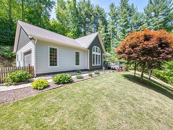 This private mountain home is located in the heart of Webster off of Buchanan Loop. Centrally located between WCU and downtown Sylva on 1.47 +/- acres with a large gentle sloping front yard. This 3bed/2bath home offers spacious one-level living with lots of natural light, cathedral ceilings, and newly refinished hardwood floors. Many updates include 2 solo tubes installed in kitchen, new washer/dryer (2021), new hot water heater (2021), encapsulated crawl space (2022), new water filtration system, bedroom carpet replaced with vinyl plank, and fresh interior paint(2021). Home features a stone gas fireplace with a beautiful mantle, large sunroom/bonus room, and master bathroom with 2 walk-in closets and a whirlpool bathtub. Kitchen boasts of stainless steel appliances and granite countertops. Property has a fenced-in yard, deck, and fire-pit to enjoy your home in the mountains. Other features include a 2-car garage, paved driveway, and a great neighborhood for walking!