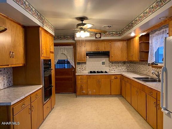 One story living. Large lot, 4 garage stalls, 2 attached and 2 detached. Needs cosmetic repairs, little paint and updated flooring. Newer oil furnace, plus heat pump, wood burner in basement, plus central air. Don't miss this one!