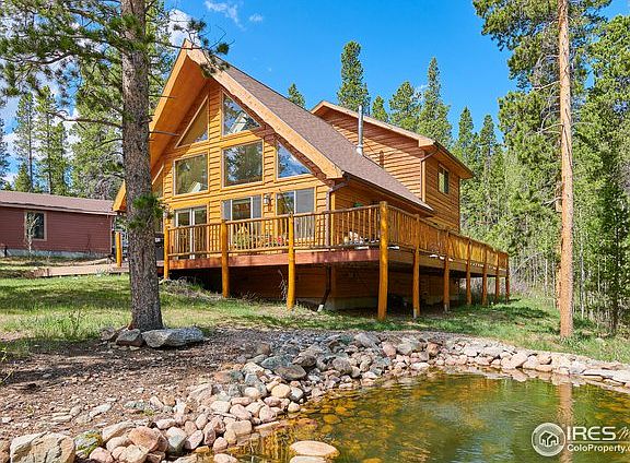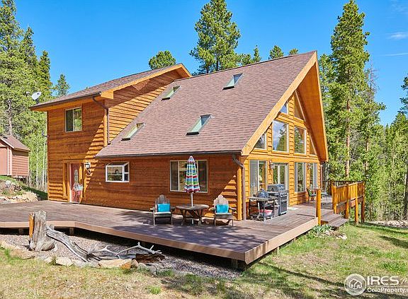 Newer mountain homes adjacent to National Forest! Main floor master with walk in closet, direct access to the deck and great master bath. Kitchen has knotty pine cabinets, tile floors & stainless steel appliances. Hot water baseboard heat and wood stove backup, lots of sun, glass and skylights make this a very bright and efficient home. Wonderful deck, hot tub and oversized 2-car garage. 5 minutes to Nederland, 40 minutes to Golden or Boulder. Low Gilpin County property taxes.