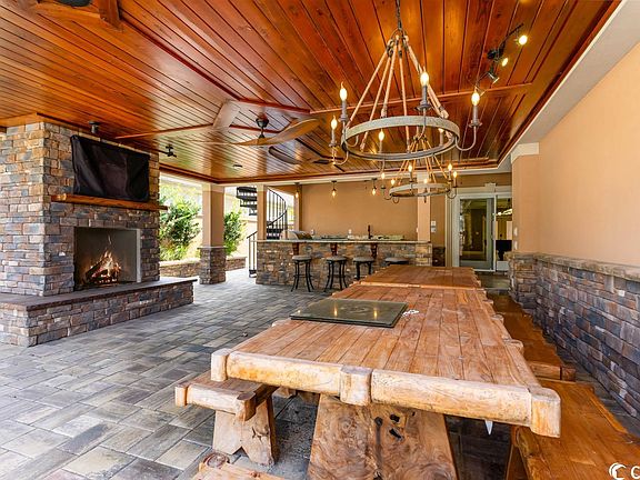 Unique quality home with breathtaking views of the Intracoastal Waterway! Located in the Premiere gated community .. The Bluffs on the Waterway. This gorgeous custom - built home includes: 5 bedrooms, 5 full baths and 2 half baths, and an impressive movie theater with seating for 10+. The ground level contains a very private resort style outdoor entertaining area with custom heated saltwater pool, huge gas fireplace, massive outdoor kitchen and counter. Also on the first level is the movie theater with Dolby Atmos surround sound, 2nd master bedroom with its own sittings room and jetted tub, another bedroom, a kitchen, and what is currently being used as a game room with a pool table and a gym/ workout room. These rooms could make an super in-law apartment. Did I mention the 3- car garage with storage above and extra parking off a private alley way? The 2nd floor is easily accessed by either spiral staircase, regular staircase or the elevator. The exterior deck with its fire pit, is the perfect spot to relax with your favorite drink. Inside is an exquisite dining room, state of the art kitchen, granite countertops, pantries, upgraded SS appliance. Off the kitchen is an expansive living room and Jack & Jill bedrooms. The entire 3rd floor houses a magnificent master suite with 2 luxurious his & her bathrooms. Hers has a closet to die for. The elegant master includes a unique ceiling, a fireplace and spacious sitting room with views of the intracoastal waterway. This home is equipped with a 25 zone NVR security camera system, 16 zone whole house audio system, and a whole house intercom. This smart home automation has 75+ device configuration and can control your entire home. 2 AC units and pool heater were installed 2022. The hot water heater is also a recent upgrade. The Bluffs features : upscale community clubhouse with outdoor pool & cabanas, tennis courts, playground, a second clubhouse (the boathouse), boat dock & boat ramp Owners can park their boat and trailer in the convenient nearby storage area. Home is vacant, available for immediate occupancy, just waiting for your contract! This home is truly a custom executive home with quality construction though out.. Convenient to Schools, hospitals, shopping, airport, and just outside Myrtle Beach with all of its amenities.