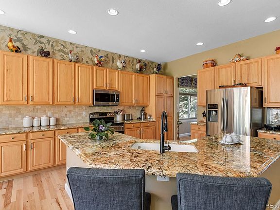 This beautiful home began its life as a model and continues to model beauty and grace. From the welcoming patio, through the gracious entrance, and into the heart of the home, small details include lovely wall texture, the dining room tray ceiling, and built-in office bookcases. The light-filled, open floor plan encourages delightful gatherings. Choose your favorite spot in front of the great room fireplace or relax in the stunning sunroom. The kitchen is a dream with granite counters, stainless appliances and an informal dining space. Retreat to your peaceful master suite and offer a second suite to another family member or guests. Working from home An office near the entry is a simple solution. The backyard offers flexible patio space, mature landscaping, and a Rose of Sharon that will knock your socks off when it blooms. You will find extra space in the basement, including a family room with kitchenette, bedroom, bath, and lots of storage space. If you enjoy garage time, this one is for you. The garage is finished and heated, with an epoxy coated floor. Even the mailbox is first class. Northridge is a quiet neighborhood with lovely homes and no HOA. You are just a 30 minute drive to Denver or Boulder. Erie is a growing, award-winning community. Amenities include a great community and senior center, library, trails and parks. Local events include the Erie Town Fair and Hot Air Balloon Festival, FarmerâEUR(tm)s Markets, Concerts in the Park, Movies in the Park, Biscuit Day, the Homecoming Parade, and more. Fill your life with understated, classic and comfortable elegance at home and enjoy the benefits of living in a vibrant community.