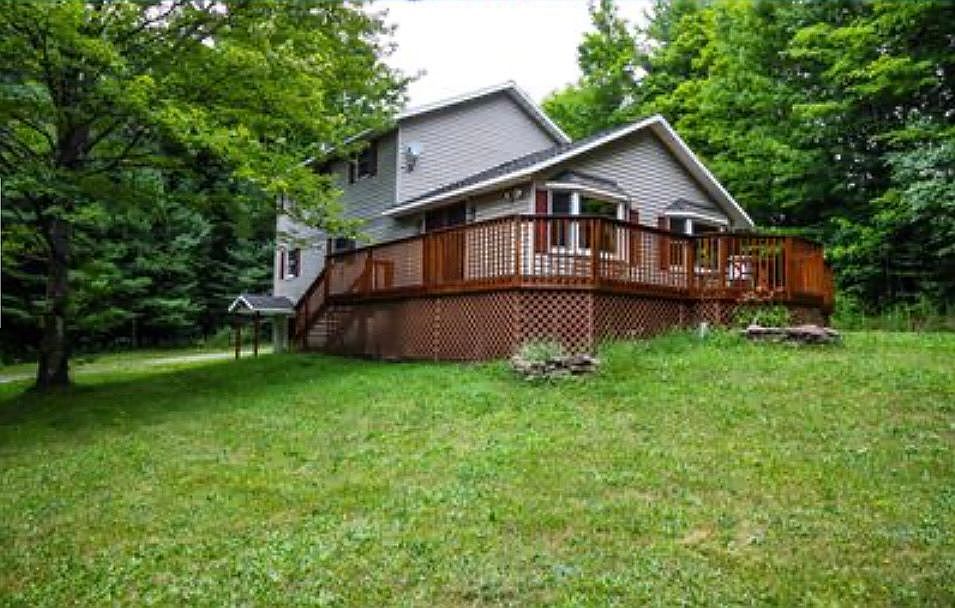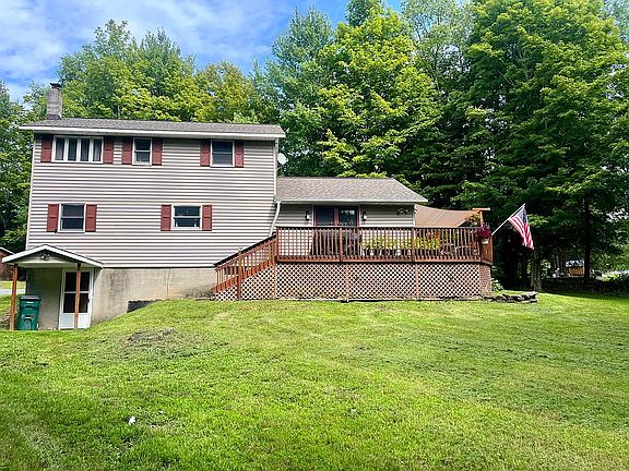 For Sale: Move-In Ready 5 Bedroom, 2 Bath, 2,000 Sq. Ft. Home on 1.92 Private Acres This turn-key, 2,000 sq. ft. 5-bedroom, 2-bath home is completely move-in ready, offering the perfect blend of comfort and luxury nestled in a peaceful and private setting. Surrounded by towering pine trees, this home is set back from the road, providing serenity and seclusion, with a long driveway and ample parking. The living room features stunning Peruvian mahogany hardwood floors and French doors that lead out to a wrap-around deck, ideal for entertaining or simply enjoying the quiet outdoors. A first-floor bedroom also boasts hardwood floors, while the kitchen and first-floor full bathroom are adorned with easy-to-clean ceramic tile. The entire interior has been newly painted, and all floors have been professionally cleaned. Upstairs, you’ll find three spacious bedrooms—all with cozy carpeting and large closets—along with another full bath with ceramic tile. The finished basement adds another bedroom, perfect for guests, or as a home office or recreational room. The property also includes an impressive 40' x 26' garage with a total of 1,040 square feet. This large garage is a versatile space, equipped with electric, water, WiFi capabilities, a pellet stove, a bar with refrigerator, and a hot tub. There’s also a large workbench, a loft for extra storage, and room for all your projects or hobbies. Outside, an additional shed provides more storage options. With 1.92 private acres, you'll enjoy a peaceful atmosphere surrounded by lush greenery, making this property a rare find. This home truly needs nothing—it’s totally move-in ready and available for viewing by appointment. Please note that a pre-approval letter for financing is required to schedule an appointment. Call the number on the listing to arrange your visit today!