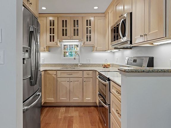 Fully renovated one bedroom ranch is deceptively large because it has a finished lower level with a bonus sleeping area, family room, and a full bath. The Living/Dining Room has twin sliding doors with internal blinds that lead to a private deck. Beautiful cherry wood floors and an efficient kitchen with granite countertops, and stainless steel appliances including a double-oven range make this condo unique. Falmouthport is upper Cape Cod's premier waterfront community with amenities that include a heated salt water outdoor pool, clubhouse, two docks, four tennis courts, a 1.5 mile walking trail, and two pickleball courts. There has never been a special assessment and none are planned.