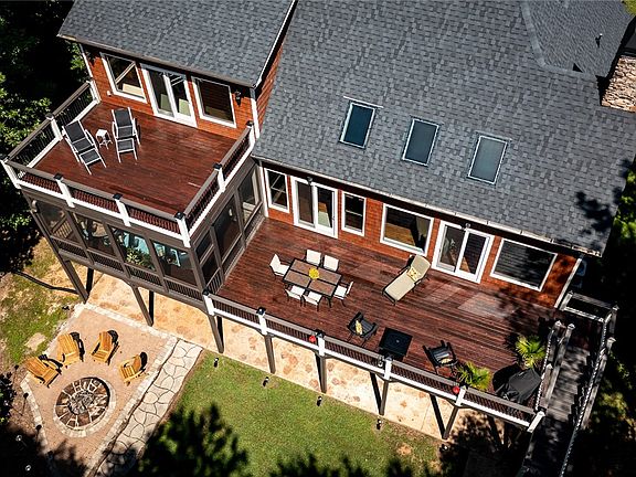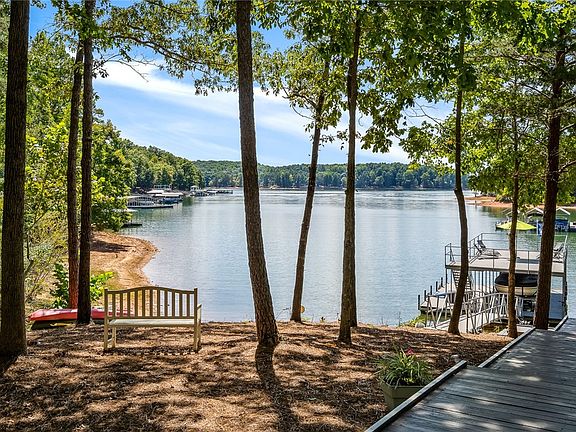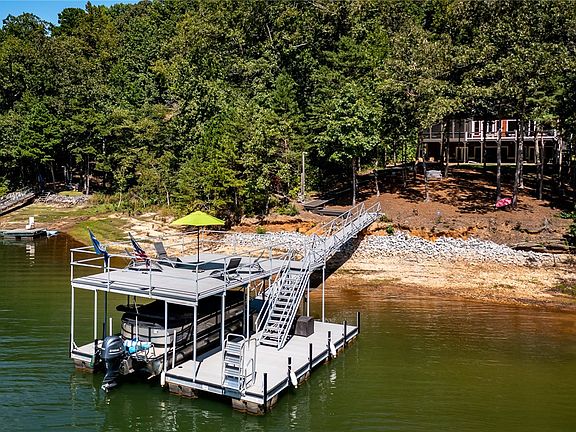 LUXURY Lake Hartwell home on DEEP water. From the moment you pull-in the long private driveway, you will notice the care and attention to every detail of this property with literally NO stone left unturned. This craftsman home has a beautiful natural rock front porch with arch grand French doors leading into a 2 story foyer. Entering the home, to the left are glass French doors leading to an office, a grand chandelier over the entryway and natural light pouring in from custom windows. In the great room you will be in awe of the grand custom ceiling moldings, chandeliers, 2 story rock gas fireplace, and custom built-in shelving with gorgeous lake views drawing you through one of the 2 sliding glass doors onto the large back deck. The dining area is perfect for large gatherings as it opens to a chef's kitchen featuring cabinetry to the ceiling, tile backsplash with exquisite detail work, beverage area with wine rack and wine refrigerator, double ovens, microwave drawer, and a large bar with rare high-end granite countertop. From the kitchen is a door leading to a screened-in porch with remote operated Savoy lanterns at every post creating the most relaxing space in the evenings with built-in speakers that are also connected bluetooth speakers in the great room and kitchen area. From the kitchen is a hallway leading to a guest bathroom, custom locker system, laundry room with refrigerator and pet wash station and a stoop to the garage with newly painted epoxy floor. The main level also features a large bedroom with tray ceilings and a bathroom with a beautiful tiled tub/shower. Upstairs is a large master suite with tray ceilings leading to a private deck with lake views. The en-suite has a tiled shower with rain shower head, step-in garden tub with air jets, built-in custom drawers. From the bathroom is a walk in closet that leads to another room that’s perfect for a work-out space, hobby room, or storage space with a small half bathroom. In the lower level is a large entertaining space or recreation room with high-end Savoy ceiling fans, amazing lake views showing through the oversized windows and a full bar with a bookshelf hidden door that leads to a storage room for wine or holiday decor. There are 2 bedrooms with a jack-and-jill bathroom, opposite side another bedroom and a steam shower with double seating for a rinse after heading in from the lake and a hallway locker system just outside of the bathroom. The back patio is a DREAM with stamped concrete and a rock fire pit with lake views and overlooking the gentle, short walk down to a double decker dock with wheeled gang walk, light, brand NEW boat LIFT, floats, and electric to dock and over 170 feet in shoreline with NEW Riprap rock professionally installed on the shoreline to prevent erosion and create a beautiful transition. Other IMPROVEMENTS…2021-22 ALL NEW - roof, heat pump, battery for Generac Generator, batteries for the solar panels, fiber optic cable installed for high speed internet, gas line to fireplace, wine cooler, and more. Contact an agent today for your private showing and copies of supplemental documents with more details.