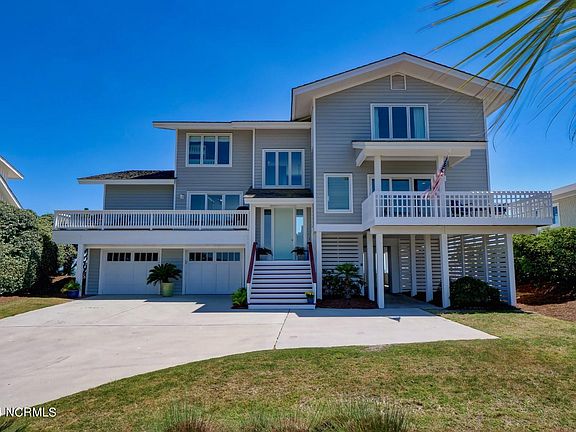 Stunning and light-filled oceanfront home, recently renovated, is located at the south end of the private island of Figure Eight. It features an open floor plan, with over 3600 sq feet of well appointed, comfortable spaces. Spectacular ocean views dominate the first floor that includes the great room with its vaulted ceilings and fireplace, open dining room and eat in kitchen. Off of the kitchen is a large pantry/ laundry room area with plenty of storage. Large comfortable decks on the main floor-both covered and uncovered-with beautiful sunrise and sunset views. An oceanfront master bedroom with a fresh ensuite bath is located off of the great room. There is an additional family room, wet bar with wine cooler and half bath to complete the main floor. Four additional bedrooms and three full bathrooms are located on the second floor. Two lovely king bedrooms with ensuite baths and a bunkroom and a fun twin bedroom share a jack and jill bathroom. The ground floor has a two car garage, one side as a newly finished rec space with a ping pong table. There is ample parking, a private large outdoor shower and plenty of covered spaces for rainy day play, surf boards and beach gear. Direct access to the beach. This home comes fully furnished with a few owners exceptions. Move right in-- all you'll need is your toothbrush. Priced to sell.