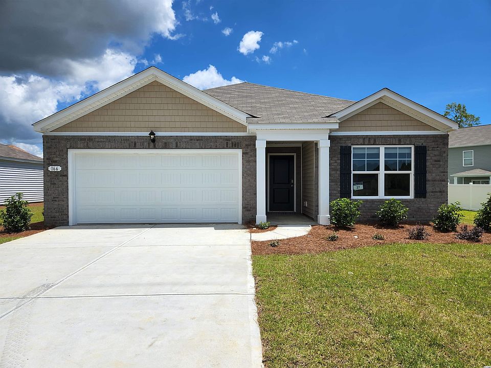 Looking for convenience to all the amenities that the South Strand has to offer? Look no further than Oak Estates East! This Aria plan is the perfect choice for any stage of life whether you are buying your first home or downsizing. Featuring a bright and airy open floor plan that is great for guests visiting you at the beach and a kitchen that boasts white painted cabinetry, granite countertops, a large working island, pantry with ample storage, and all stainless Whirlpool appliances. Sliding glass doors off the dining area lead to the rear porch creating a seamless transition from indoor to outdoor living. The split bedroom floorplan creates a private primary bedroom suite with a walk-in closet and spacious bathroom offering a double vanity and 5' shower. Blinds will be included throughout the house on all standard sized windows and the living room and all bedrooms will be pre-wired for cable and ceiling fans. Two-car garage with garage door opener. It gets better- this is America's Smart Home! Control the thermostat, front door light and lock, and video doorbell from your smartphone or with voice commands to Alexa. *Photos are of a similar Aria home. (Home and community information, including pricing, included features, terms, availability and amenities, are subject to change prior to sale at any time without notice or obligation. Square footages are approximate. Pictures, photographs, colors, features, and sizes are for illustration purposes only and will vary from the homes as built. Equal housing opportunity builder.)