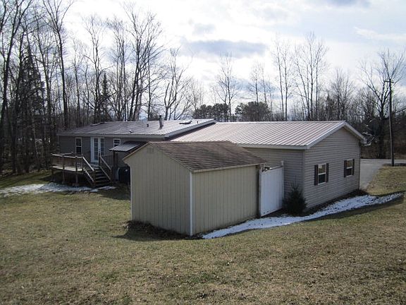 Very clean, 2003 double wide on large, quiet lot in a wooded setting including lovely landscaped yard with trees and flowers. Two car attached garage with paved driveway. Also has two storage buildings. Located just up the road from Chateaugay Lake and less than a half mile to the public boat launch. Light and bright with an open floor plan, ceiling fan in living room, bathroom skylights, lovely starter home, or if you're looking to downsize, this is the place. Just a lovely spot. Bedrooms feature large closets and wall to wall carpets. Call for your private showing today. Has attached 28 x 24 garage, and charming, attached, covered and screened in front porch.