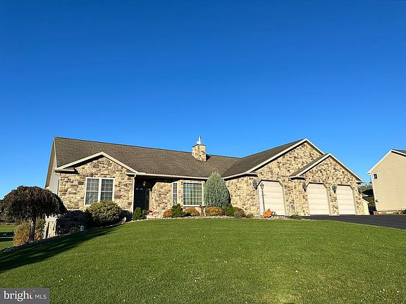 Impeccable, inside and out! This quality built custom home in the highly desirable Ashford Manor neighborhood has been maintained beautifully with more upgrades than we can mention. Situated on a very large lot with incredible views of the neighboring farms and mountain range, this stone ranch style home has everything you have been looking for. When you walk into the spacious entry you will love the open floor plan with a huge eat-in kitchen and dining area that boasts an abundance of maple cabinetry, granite counter tops and new stainless steel GE Profile appliances. The large working island offers great working and eating space. From the kitchen you can enter the living room that includes a stone gas fireplace, great floor space and a large bay window. The owners suite on one side of the home includes a large owners bath with whirlpool tub and separate ceramic tile shower with granite seating. The large vanity also has additional plumbing for a future double sink. The owners suite also includes a very spacious walk-in closet and also has access to the huge covered rear deck. On the opposite side of the home you will find two additional large bedrooms and another full bath. All bathrooms boasts ceramic tile floors and all floors on the main level are heated. From the dining area you can access the huge rear covered deck with can lights and an incredible view of the mountains and countryside. The covered deck is 36 x 12 and then the attached patio is 33 x 12 with access into the back of the garage. The 3 car plus garage is a homeowners/ car collectors dream with new epoxy floor, vertical vinyl siding on the walls, hot water heating system and air conditioned. The amazing garage also includes a large workbench and double doors to the backyard. The beautifully manicured backyard includes a 28 x 17 storage shed for additional mowers, or workshop. The lower level of the magnificent home is mostly finished and includes hot water baseboard heat, drywall walls and the future full bath has working toilet and tub/shower combination. Include your own vanity, flooring and finished ceiling and you an amazing finished lower that has a straight walk out. This is truly a one of a kind home in impeccable condition. Don't miss out, call today!