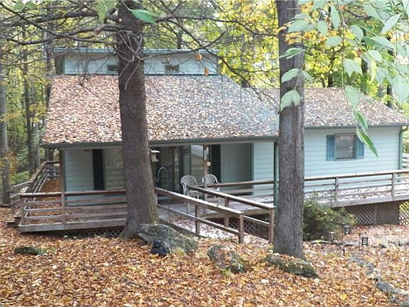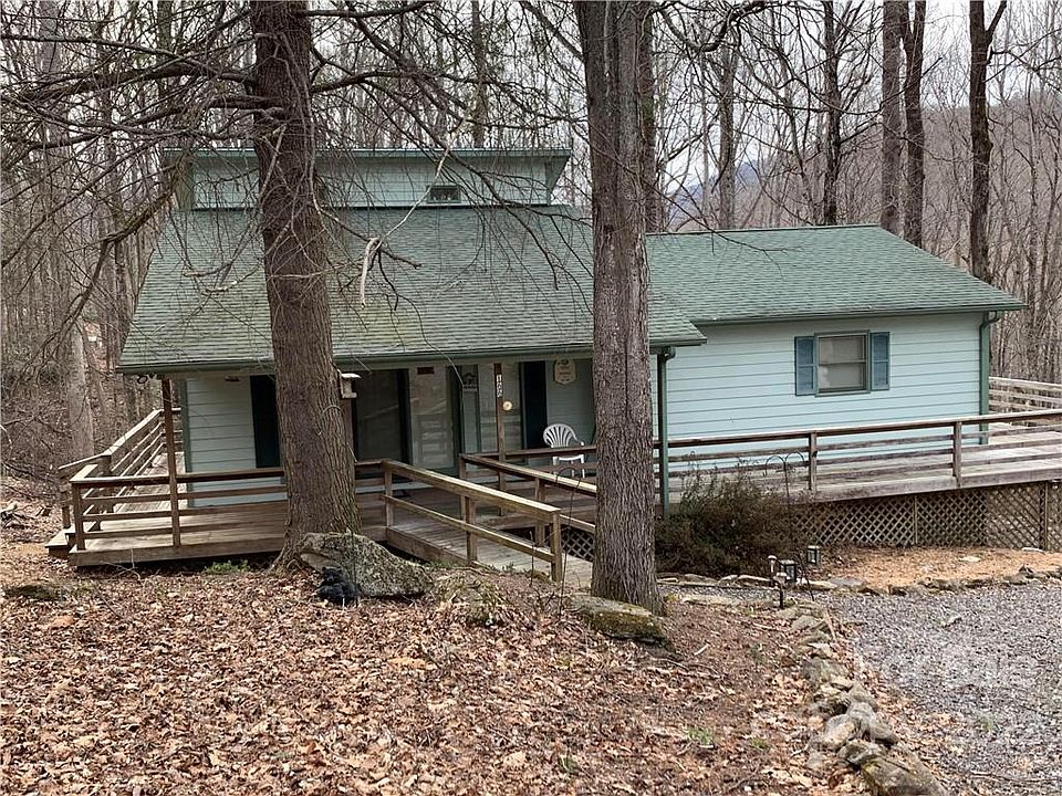Woodlands accurately describes the setting of this lovely home w/beautiful creek. Wonderful covered front porch & side decks on both sides. Two primary bedrooms & 2 baths, living room w/vaulted ceiling, eat-in kitchen, & laundry on main. Upstairs is a bonus room. Lower level has 1-car garage and a finished family room, 2nd bonus room, bath a screened porch, connected through unfinished garage. The sellers are the original owners and the home was always used as their summer home. This home comes completely turn-key, just move right in and begin enjoying the mountain life in sought after Maggie Valley. No city taxes. The upper part of the property has a gravel parking pad. There is a 20' right of way on the lot below this house for the sellers to access the garage in basement & lower lot. There is also a 10' right of way on the upper corner of the property for a driveway to the house above. Underground utilities & new architectural shingle roof Jan 2022.