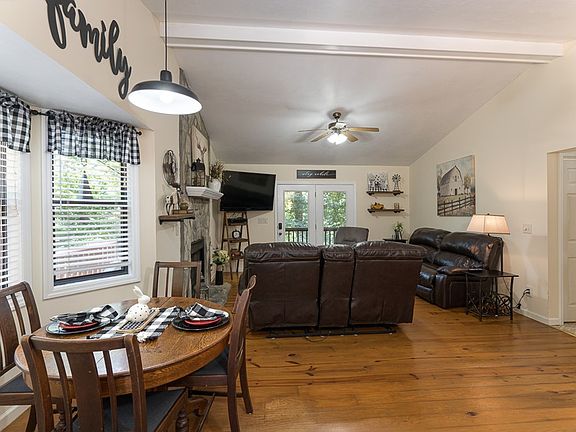 This charming fully furnished mountain cabin sits on a 1 acre private wooded setting. As you step inside, be prepared to be enchanted by the warm and inviting open floor plan, accentuated by vaulted ceilings that creates a sense of spaciousness and airiness. The centerpiece of the living area is the stone fireplace, perfect for cozying up to on chilly evenings creating unforgettable memories with loved ones. The well appointed kitchen features granite countertops and modern appliances. The seamless flow of this open concept kitchen creates an inviting atmosphere, perfect for entertaining guests. The master bedroom offers a peaceful sanctuary while the guest room ensures ample space for visitors seeking their own tranquility. The sprawling screened in covered deck offers ample space for outdoor furniture, dining area and even some cozy nooks for quiet moments alone. Whether your looking to unwind after a long day or host unforgettable parties, the screened in deck is perfect setting for all your needs. This cabin offers a perfect blend of rustic charm and modern comforts, making it an ideal retreat for relaxation and rejuvenation. Whether your seeking a weekend getaway or a permanent residence, this cozy cabin is ready to welcome you home.