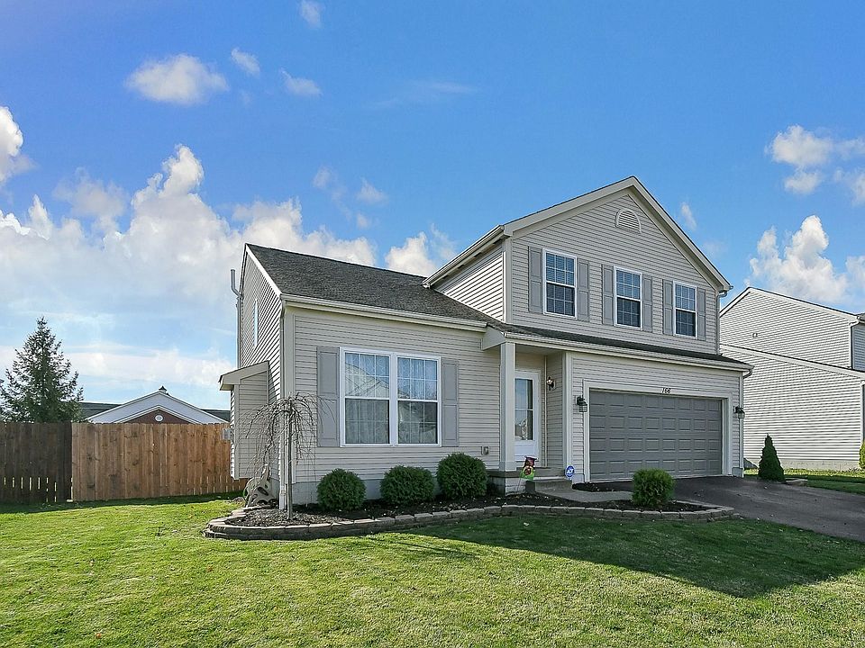 Awesome home with vaulted ceiling Great Room w/gas fireplace-Dining Room/Flex Room is currently being used as the Bourbon Room-Great Kitchen with Island, Eat-in Breakfast Bar and Eating Area has a bay window-Updated Half Bath & 1st Floor Laundry Room-Hardwood flooring on most of the 1st Floor-Upper Level features a Owners Suite w/nice Owners Bath with double sink vanity and large shower-2 other Bedrooms and all 3 Bedrooms have laminate flooring- large Loft that overlooks the Great Room-Large partial Basement ready to be finished- Workbench to remain- Radon mitigation system installed in 2019-Great fenced lot with new deck and new fence-New AC-New Garage Door-Exterior recently painted-Nice landscaped lot situated on the Loop in Lantern Chase.