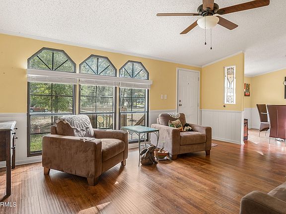 This lovely home is de-titled, holds NO restrictions or HOA, is permanently affixed to over an acre of land, and ready for new owners! Not only is it fully fenced in and complimented by pomegranate fruit trees, palm trees, and a small orchard of blackberries and blueberries, but also sits a stone's throw from a basketball court and a public boat ramp. You will love that it is already has a new roof and HVAC unit, as well as new kitchen appliances. Make this lovely and quiet property yours today! The opportunities are endless to make this your own slice of paradise and personal haven.