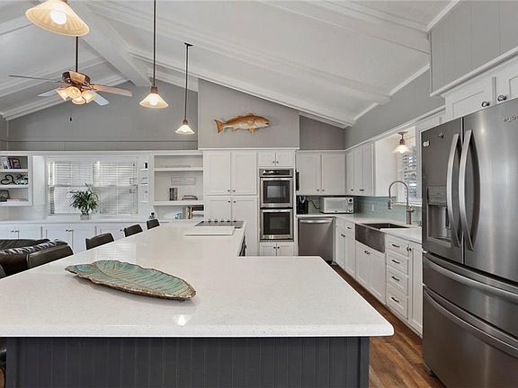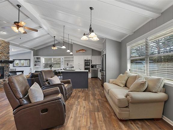 Come home to this beautiful lake retreat! Newly remodeled with wood floors, quartzite counter tops, double ovens, carpet, kitchen cabinets, custom vanities, fresh paint, SS appliances and more. RO system ran to refrigerator line and dehumidifier system throughout. Nestled on two lots, .680 acre, beautifully landscaped, with sprinkler system and a detached garage. Short walk or golf cart ride to Tanglewood Resort, Highport Marina, Golf course and more. Wall of windows overlooking the large wood deck and fenced-in back yard gives the perfect place for morning coffee along with a built-in stone BBQ grill; Perfect excuse to escape the city and enjoy the lake life. Bring your lake toys--must see this one!
