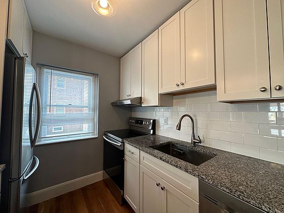On the Cambridge/Arlington line. Well-maintained 1 bedroom on the 1st floor of a 4 family brick building. Very clean apartment with an ULTRA MODERN kitchen! Heat and hot water are included in the rent as well as 1 off-street parking space. (Reference #125083)
