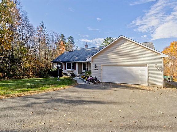 Seller is still allowing showings and back up offers. Welcome to this expansive Ranch set on 4.3 acres of serene land. The home features wood floors throughout, with a kitchen that boasts tile flooring, granite countertops, a breakfast bar, and under-cabinet lighting. The open floor plan seamlessly connects the kitchen to the living and dining areas, both with wood floors. The spacious living room includes a cozy pellet stove, while the dining area offers sliders that lead to a deck with a hot tub, overlooking the above-ground pool and fenced-in yard. The family room features a large box window and wood floors. The primary bedroom offers a walk-in closet and en-suite bath. 2 additional bedrooms and a mudroom with access to the 2-car garage complete the main level. The walk-out finished basement provides extra living space, including a game room, bar, exercise area, & wood stove. It also includes an in-law suite with its own deck, bedroom, & an additional room, perfect for an office.