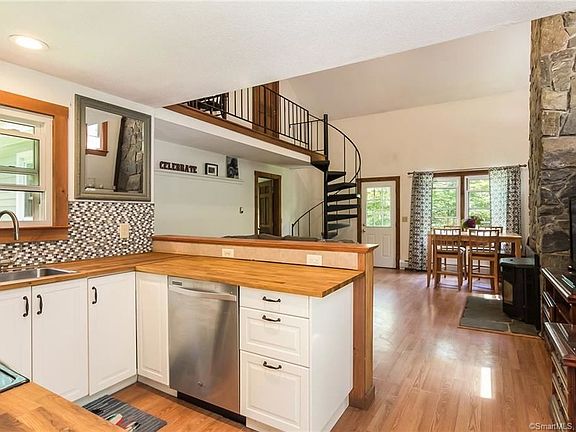 Looking for a move-in ready home with an open floor plan and unique architectural qualities? 166 Brush Hill Road has all of these features with its new windows, siding, garage doors and remodeled kitchen. The main level is open and offers the opportunity for one level living with its Master Bedroom and full Bathroom, Living, Dining, Kitchen and Laundry areas. Unique architectural features include a floor to ceiling stone fireplace with pellet stove and spiral staircase ushering you into a generously sized private second bedroom. Side porch and private, level back yard offer the opportunity for outdoor relaxation and entertaining. Improvements: Roof and windows 11 years old, new siding/garage doors windows 2017, 200 amp electrical service, generator transfer switch, Kitchen and appliances 2016, New heating propane system. Dont miss out on this gem located in the laid back and inviting town of Lyme with its many small town attractions including its parks, preserves and trails!
