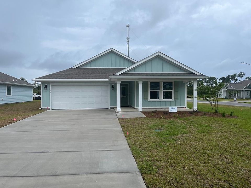 Welcome to 166 Cades Court, a new home floor plan at Palmetto Bluff in Port St. Joe, Florida. The Lakeside is a one-story home with a double garage and a large open floor plan. This home is currently under construction and is situated on a large corner lot. The exterior of the Lakeside floor plan features Hardi Board on all sides as well as gutters, an irrigation system, dimensional shingles with a 30-year warranty, and more. The covered front porch is the perfect size for sitting and enjoying the beautiful sunrises and sunsets of Port St. Joe. The interior of this home has 5 bedrooms, 3 bathrooms and 2,012 square feet of spacious, comfortable living space. The interior features include 8' ceilings throughout, engineered vinyl plank flooring throughout, including the bedrooms. Beautiful granite countertops, white cabinetry and a spacious open living room and kitchen make this home perfect for having guests over. The kitchen has a center island that is ideal for serving kids or guests, a nice size pantry and the stainless-steel appliances include smooth top range, microwave, and dishwasher. Located right next to the dining area, this makes serving meals with ease. The primary bedroom has a spacious bathroom and features a double vanity with granite countertops. A walk-in closet with ventilated shelving is also located in the bathroom, giving you more room in the primary bedroom. The guest bathrooms feature a single vanity with granite countertops and a shower and tub combo. Palmetto Bluff is located right behind Port St. Joe Highschool, so it is just on the outskirts of town and for outdoor recreation this subdivision has a pickle ball court.