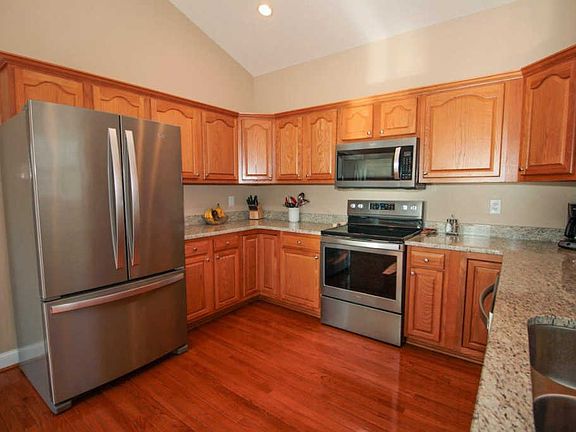 Another Unicorn! Well-kept ranch on full finished walk-out basement. Nearly a quarter of an acre. Open floor plan with split bedroom layout. NEWER stainless appliances, MANY cabinets and lots of granite counter space in the kitchen. Vaulted ceiling, gas fireplace and all kinds of space in the living room. All bedrooms are good-sized. High grade carpet throughout. You will LOVE the way this basement is finished. Outside, you'll find two great mature trees in the front yard and another in the privacy-fenced back yard. Large deck covers a concrete patio w perfect place for an evening swing. Did I mention 2 water heaters! Call/text for more information or better yet, to get inside to see for yourself!