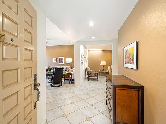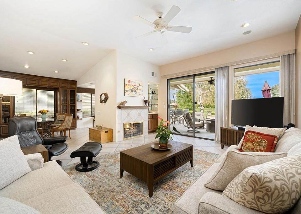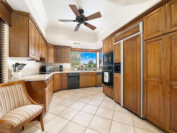 UNBELIEVABLE 3 bedroom 2 bath 30 plan completely remodeled! The minute you see the brick driveway you know this home is special. Open floor plan with large diagonal tile throughout, custom cabinets and built-in's. Kitchen is open to dining room with beautiful custom wood cabinetry, built-in Refrigerator and extra large window over kitchen sink. Dining room has a built-in china cabinet matching the wood of the kitchen cabinet. There is plenty of recessed lighting and bluetooth-enabled built-in speakers in several rooms. A large wine cabinet holds approx 30 bottles, plus a security system in the home so you know your wine is safe. Living room has functional wet bar and decorative fireplace with mantle. The den has a built-in closet with desk that can be used as a third bedroom. One wall of den has open niches to let in more light. Both bathrooms have been totally upgraded, the master bathroom's shower is extra large, solar lights are installed in bathroom and laundry room. Also there is a floor safe in master closet. Floor is tiled from the garage entry and garage floor is rubberized sheet tiles, plenty of garage storage. Extended enclosed back patio with block pony wall and boasting a fabulous custom outdoor BBQ. Also included is the patio furniture plus inviting fire pit. Beautiful Monterey Country Club has 27 holes of championship golf, 37 community pools and spas, tennis, pickle ball, bocce ball, fitness center, pro shops and full service clubhouse.
