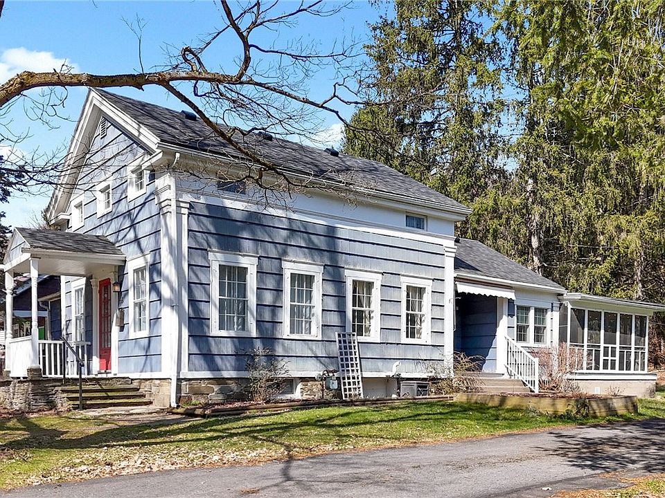 A very special property in the V. of Groton with public water and sewer on 6 acres with yard and wooded hillside. The Greek Revival home combines antique charm and modern amenities. You'll fall in love with the eat-in kitchen with its abundant cherry cabinets, an island, and granite counters! Nearby is the convenient large mudroom/laundry room and screened-in porch. Upstairs has a walk-in attic for storage. The blacktop drive leads to the 1/2 story barn with 2 garage bays and a large shop space. This has all you could ask for with Village conveniences and central location between Ithaca and Cortland. Offers will be review March 20th at 3pm. Open Houses Saturday 3/16 2-4pm and Sunday 3/17 11am-1pm. (Taxes are based on 2023 assessment of $215,000. Preliminary 2024 assessment is $247,000)